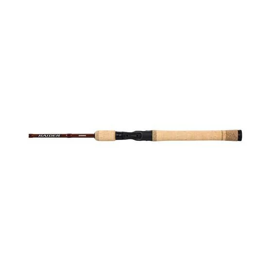 The Shimano Raider series of baitcaster rods have been built for precise casting and impressive fish fighting power. They’re made with a 30 ton toray graphite blank, a full length cork butt, and Fuji K Faz lite guides. The custom Shimano reel seats give it a comfortable feel. Great for hunting native species.